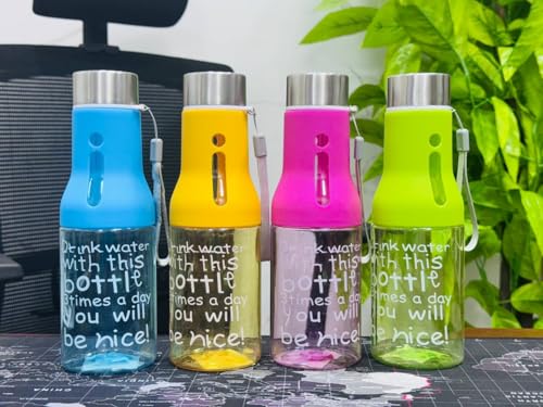 - CAPACITY: 600 ml water bottle made from durable transparent plastic with a sleek steel cap and convenient carrying strap