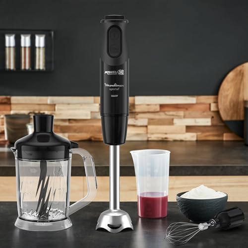 Moulinex - خلاط يدوي اوبتيشيف بقوة 1000 وات،17 وظيفة مع وعاء فرم سعة 1.5 لتر وكوب معياري سعة 800 مل ومضرب خفق من مولينكس، لون أسود - DD6554EG