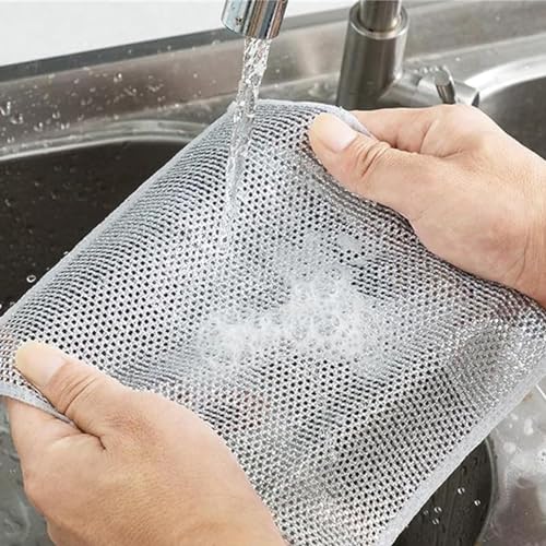 MplehDa - Multi-Purpose Wire Dish Cloths for Wet and Dry, Pack of 10 Wire Tea Towels, Thick Double Layer, Reusable, Strong Cleaning Cloth, Microfibre Cleaning Cloths, Dust Cloths