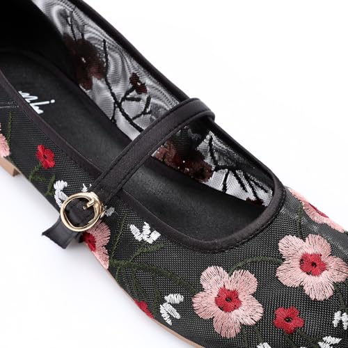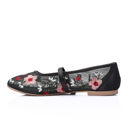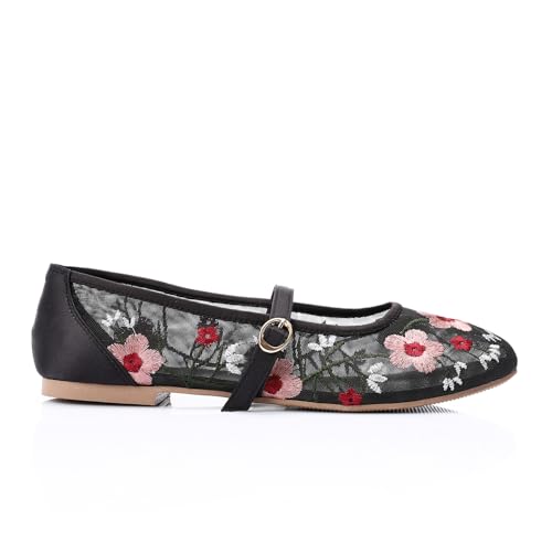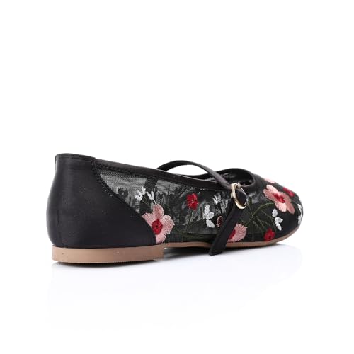 Mr Joe - حذاء باليه فلات مطرز بزهور للنساء من مستر جو، لون بيج - 3030
