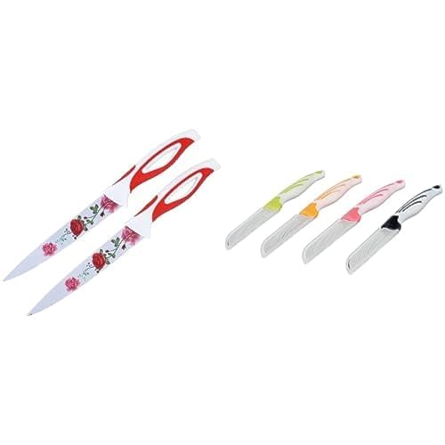 MT - MT Ceramic Knife Set, 2 Pieces - White Red + Image group m121 stainless steel fruit knife, 4 pieces - multi color