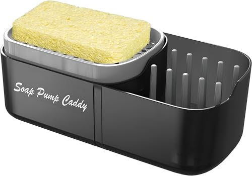 Generic - منظم متعدد الاغراض - موزع صابون انيق مع حامل اسفنجة مدمج وصينية تصريف لتنظيف المطبخ بدون مجهود