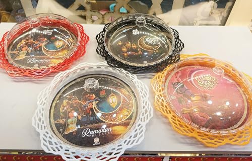 - ELEGANT SERVING WITH CLEAR ACRYLIC LID: The transparent cover protects food from dust and insects while allowing full visibility, enhancing presentation for dates, sweets, snacks, and desserts during Ramadan gatherings, family meals, and special occasions, keeping food fresh and hygienic.
