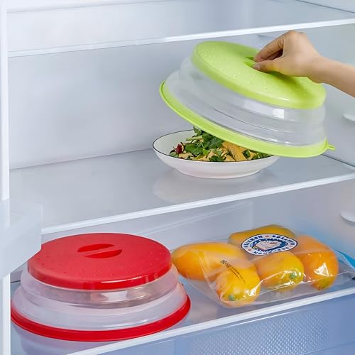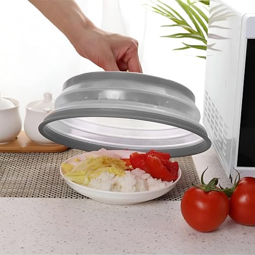 - With a diameter of 26.7 cm when open, this versatile microwave cover is perfectly sized to fit most dishes and bowls, ensuring they sit comfortably inside the microwave. Beyond its primary function, it can also be used as a washing basket, fruit and vegetable drainer, bowl cover, and temporary storage for kitchen utensils. This multi-functionality makes it a valuable addition to any kitchen, offering various uses in one space-saving design.