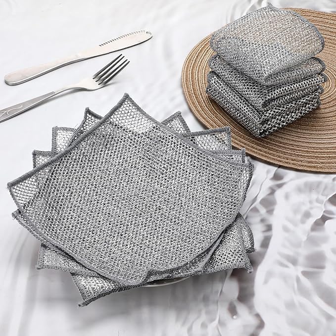 - Multipurpose Cleaning Rags: Versatile wire dishwashing rags are suitable for wet and dry cleaning. Perfect for cleaning kitchen utensils, cars, electronics, eyeglasses, stainless steel, appliances and more.