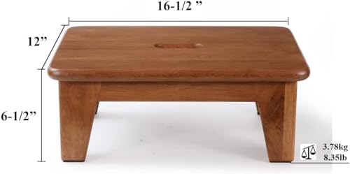 MUSTOOK - Step Stool For Bed Pine Wooden Step Stool For Adults One Step Stool For Seniors Non-Slip Mat No Assembly Needed (Wooden Step Stool-01, Bench)