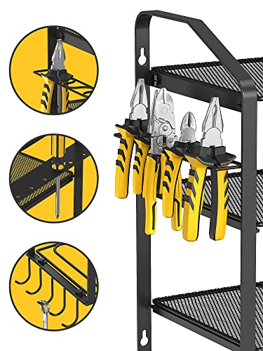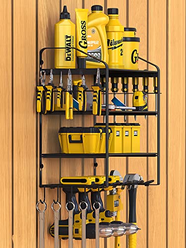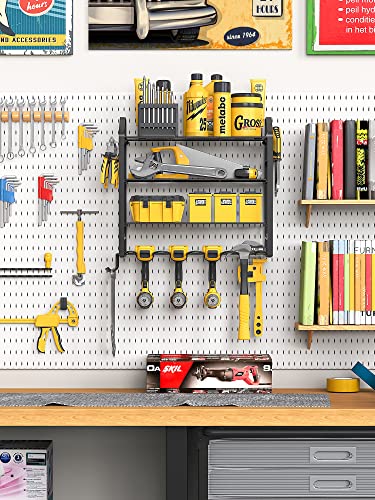 - 🔨 تصميم من 3 مستويات و4 حوامل: تم تطوير منظم الأدوات في إصداره الأخير ليصبح من 3 مستويات. يتميز المنظم بتصميم فريد يضم رفًا جانبيًا للمفكات وخطافات ومقابض على الجانبين، مما يوفر مساحة تخزين كافية لجميع أدواتك. يمكنك تعليق منظم الأدوات هذا في أي مكان تريده: في الجراج أو غرفة الأدوات أو الورشة أو السقيفة أو لوحة التخزين.