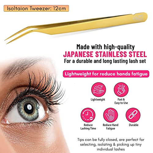 Cross Edge Corporation - My Lash Tools New Isolation Lash Tweezers For Eyelash Extensions Best for Individual Isolation & Classic Lashes Japanese Stainless Steel Lightweight Precision Lashing Twisers (Gold)
