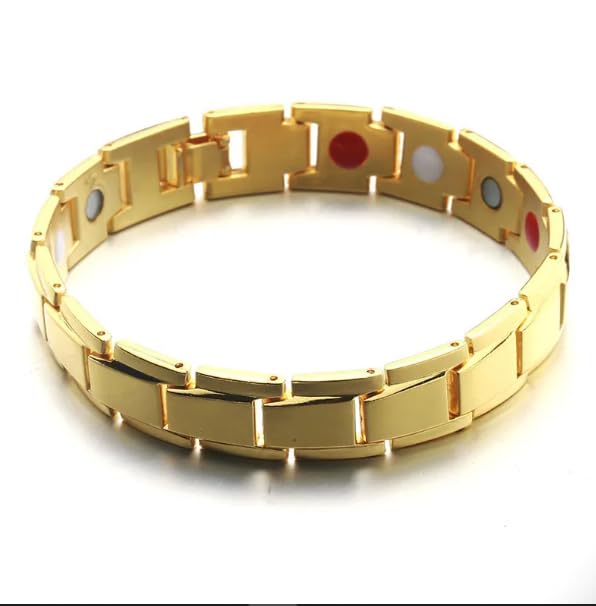 Generic - MySouqEg - Store - Men's Gold Magnetic Therapy Bracelet – Elegant Stainless Steel Wellness Bracelet with Negative Ions, Germanium & Infrared Elements 1PCS - 22CM