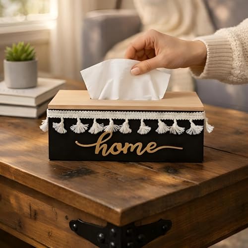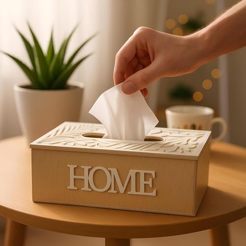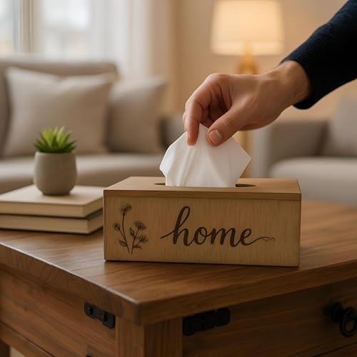Generic - حامل مناديل من الخشب الطبيعي - موزع مستطيل انيق مصنوع من الخشب غير المعالج، يتميز بقاعدة قابلة للازالة لسهولة اعادة التعبئة، مثالي لعلب المناديل القياسية وحاويات المناديل المبللة. (الخيار 2)