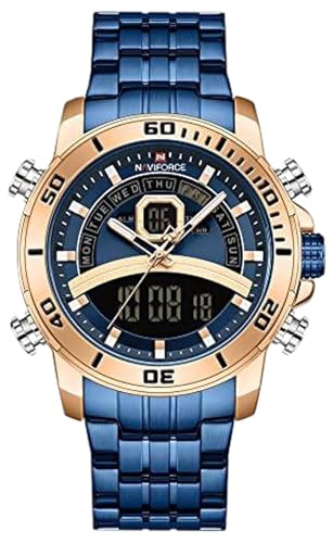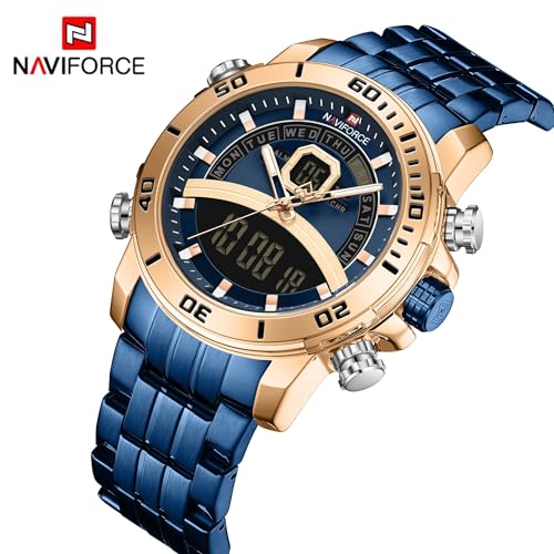 Naviforce - Naviforce Watch for Men, Quartz Movement, Analog Display, Blue Stainless Steel Strap-9181S RG-BE