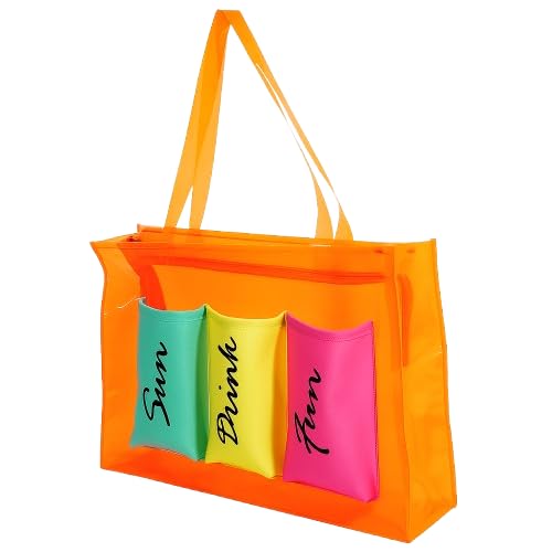 Generic - شنطة الشاطئ النيون الشفافة بجيوب اورنج