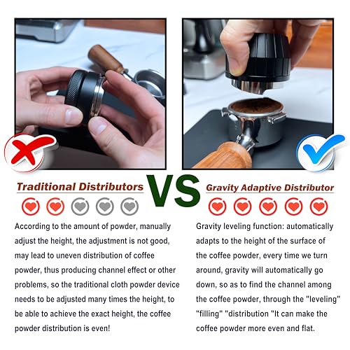 - تصميم مبتكر - موزع نيوزا Gravity Distributor هو أداة لتغيير قواعد اللعبة تحدث ثورة في طريقة استخراج الإسبريسو. تم تصميم هذا الموزع لتوفير توزيع متساوٍ ومتسق للقهوة المطحونة في سلة فلتر القهوة، مما يضمن أن كل جرعة من الاسبريسو ذات جودة عالية. مع موزع نيوزا Gravity Distributor، يمكنك تحقيق استخلاص متساوٍ مثالي في كل مرة.