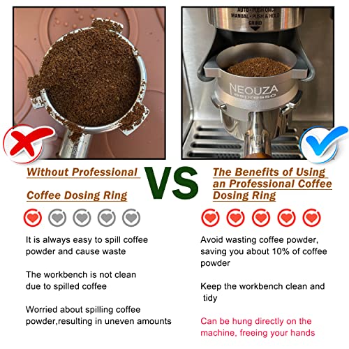 - ☕Avoid message and waste – coffee dispenser ring no longer wastes coffee and makes your worktop mess – with a coffee dispensing funnel, the entire coffee is directed into the portafilter basket, make it much easier to use your tamper or distributor.