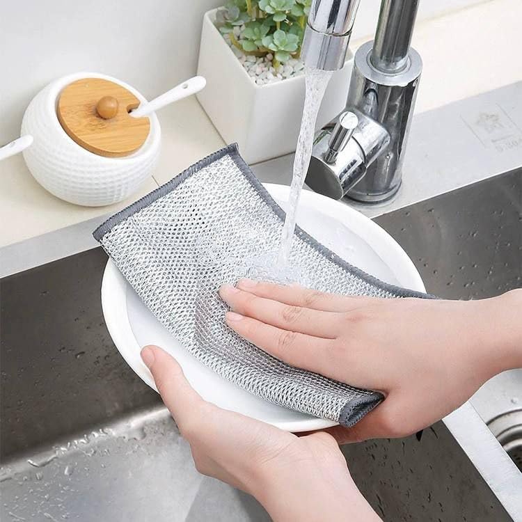 - [EFFECTIVE & FAST CLEANSING]: Next Store 2-in-1 wire towel gives you great potency of cleaning pots and bowls thanks to the wire face that quickly removes tough oil and dirt, while the second side is made with soft fabric that helps to easily dry the surface without leaving traces or scratches, perfect for every modern kitchen.