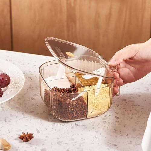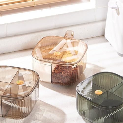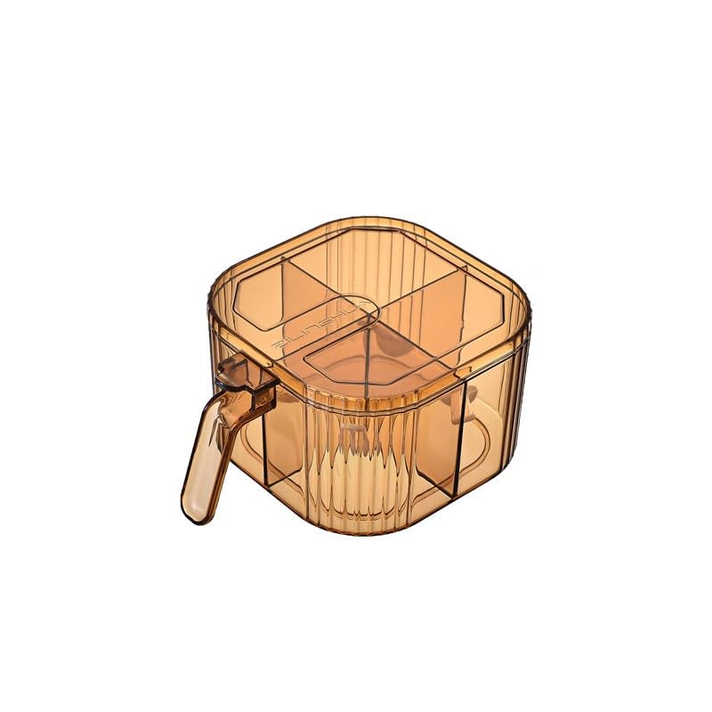 Next store - Next Store 4 Compartments Clear Acrylic Spice Box with Spoon Each Compartment and Airtight Lid for Storing Condiments and Spices in an Organized and Practical Way (Brown)