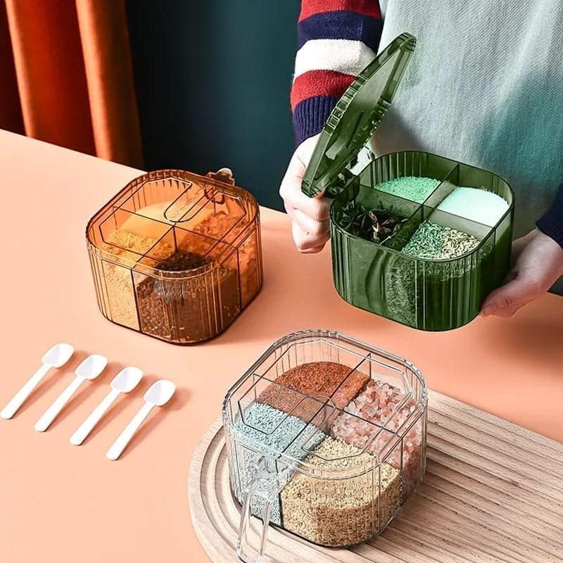 - Clear Acrylic Seasoning 4-Compartment Seasoning Compartments For Kitchen Easy To Use Seasoning And Seasoning