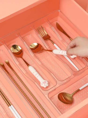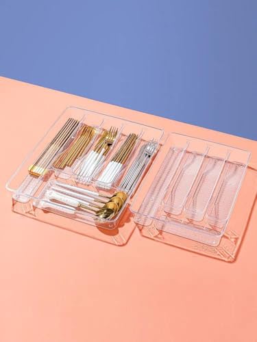 - منظم أكريليك بيور متقسم إلى 3 أقسام لتسهيل ترتيب الشوك والملاعق والأدوات الصغيرة داخل المطبخ والأدراج بطريقة مرتبة وعملية