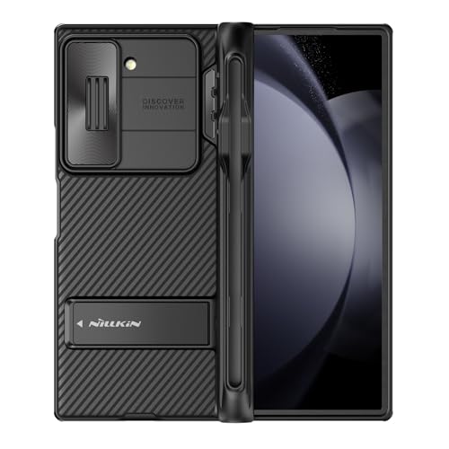 Nillkin - جراب بحماية للكاميرا قابل للطي من نيلكين (مع حامل قلم وحامل) لموبايل سامسونج جالاكسي Z فولد 6 شبكة الجيل الخامس 5G - أسود