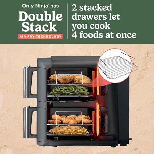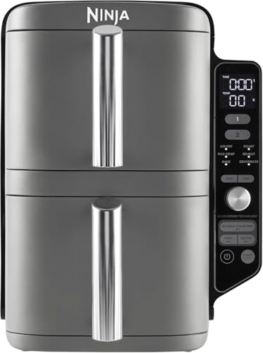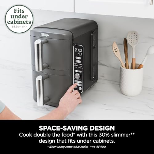 Generic - Ninjaa Double Stack XL Air Fryer, Vertical Dual Drawer Air Fryer with 4 cooking levels, 2 Drawers and 2 Racks, 9.5L Capacity, 6 Cooking Functions, 8 Portions, Grey, SL400ME