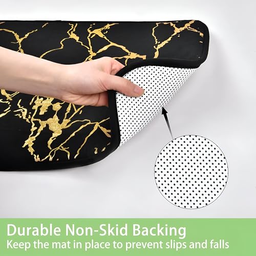 Generic - طقم سجادة حمام غير قابلة للانزلاق - نمط رخام معاصر، يتميز بسجادة حمام وغطاء وسجادة حمام قابلة للغسل، مجموعة مثالية من 3 قطع لديكور حمامك (اسود)