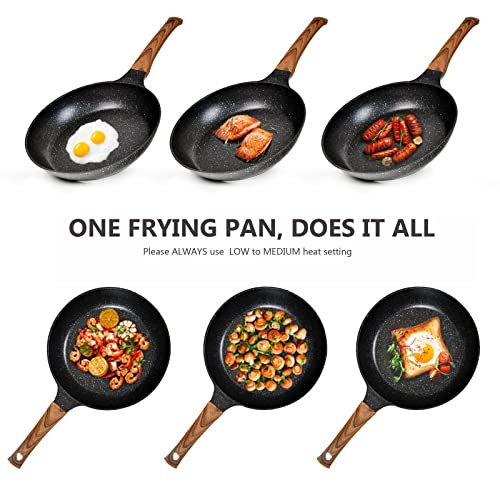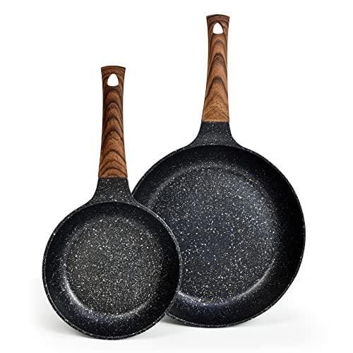 - 【غير لاصقة وسهلة التنظيف】تتميز طاسات القلي بطبقة من طلاء الجرانيت الصديق للبيئة ومادة حجر طبيعية وهي خالية من حمض بيرفلورو الأوكتانويك (PFOA) بنسبة 100% ولا يحتوي على الرصاص أو الكادميوم. يحاكي ملمس الحجر الرخامي، سطح متين للغاية. يسمح السطح الرائع المقاوم للالتصاق بسهولة تنظيف طاسات القلي. صممت طاسات القلي المقاومة للالتصاق بسطح داخلي مقاوم للخدش، حيث تضمن عدم تقشره أو تعرضه للصدأ من أجل طهي صحي. استخدام كمية قليلة من الزيت أو الزبدة يساهم في اتباع نظام غذائي صحي ويسهل طهي وجبة رائعة.