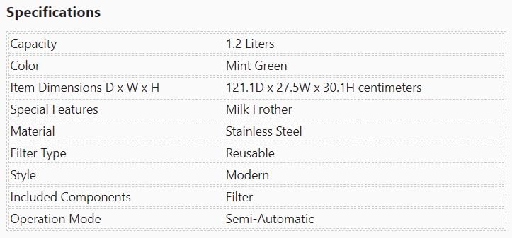 - مع صانع رغوة الحليب: ملحق بار القهوة مع نفاثة بخار دوارة لرغوة الحليب للكابتشينو أو اللاتيه. مثالية لتحضير القهوة المطحونة أو الموكا أو الكابتشينو في المنزل أو في المكتب
