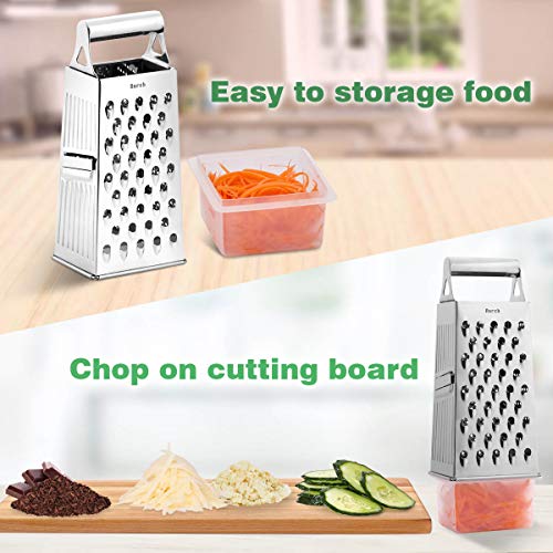 - 【تصميم متعدد الوظائف 4 في 1】 مبشرة متعددة الاستخدامات بأربع وظائف أساسية للبشر والتقطيع والبشر الناعم والبشر الخشن. مثالية لبشر الجبن والجزر والخضروات والبارميزان وجوزة الطيب والزنجبيل والثوم والشوكولاتة وجوز الهند، كما تعمل أيضًا كمقشرة لليمون وقطاعة شرائح خضروات عملية.