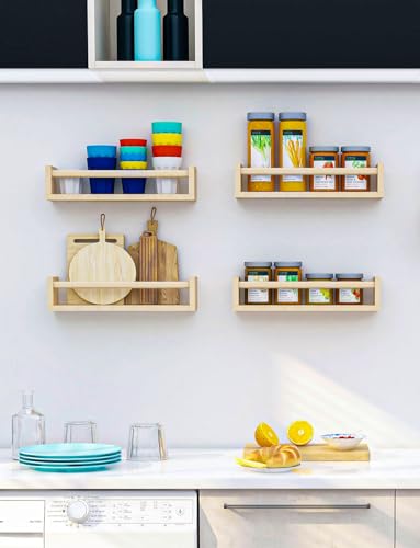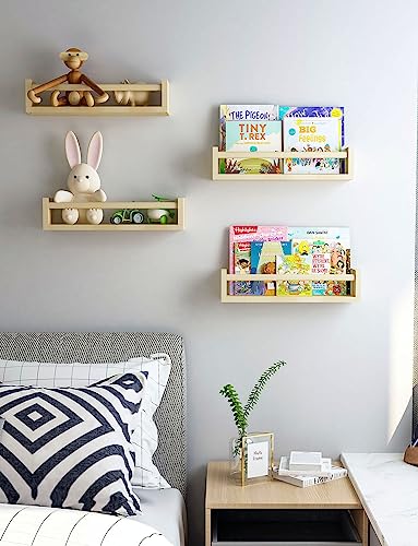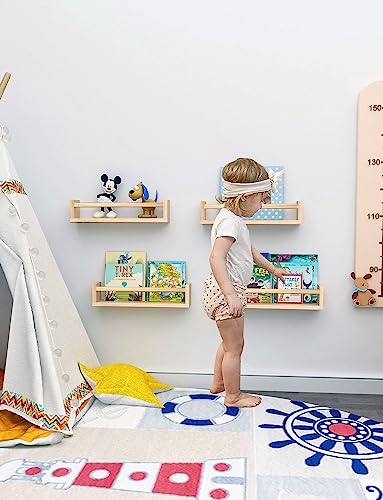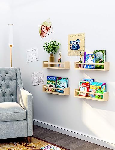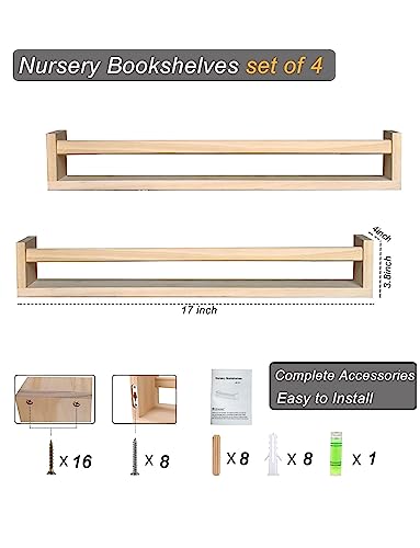 Bidami - Nursery Book Shelves Set of 4,17 inch Wall Bookshelves for Kids, Perfect for Baby’s Room, Kitchen, Bedroom and Bathroom. (17S4)