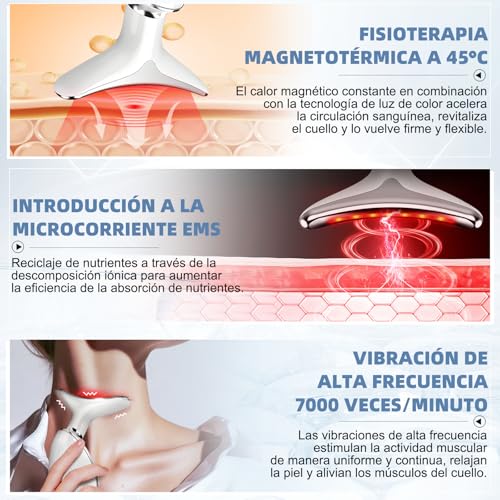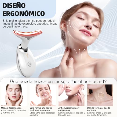 - 【أضواء ليد بسبعة ألوان】 بالإضافة إلى إمكانية التبديل بين 3 أوضاع تدليك، يُصدر جهاز تدليك الوجه الكهربائي سبعة ألوان من أضواء ليد لتكملة تدليك الوجه والرقبة: ضوء أحمر لمكافحة الشيخوخة، وضوء أزرق للالتهابات، وضوء أخضر للتجاعيد، وضوء بنفسجي لإزالة السموم، وضوء أصفر لتوحيد لون البشرة، وضوء أزرق فاتح لتخفيف شد البشرة، وضوء أبيض لتهدئة البشرة.