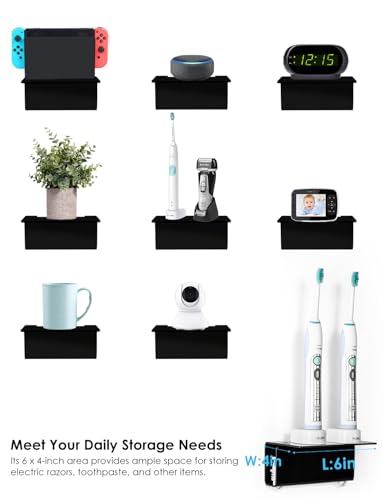 - Sturdy and Versatile: The wall mount toothbrush holder has a maximum load capacity of 2LBS. Its 6 x 4-inch area provides ample space for storing electric razors, toothpaste, and other items.