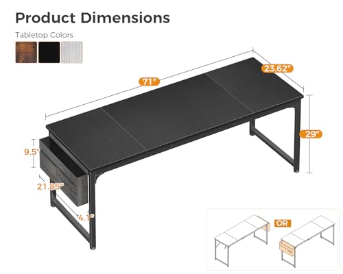 ODK - ODK 71 Inch Large Computer Desk Home Office Desk, Long Modern PC Desk Work Table with Headphone Hook & Fabric Bag for Storage, Spliced Board, Black