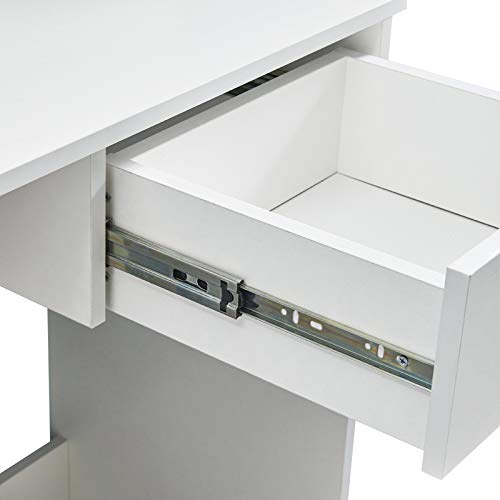 - Makeup Desk with Drawer and Shelf - 1 drawer and 2 shelves give you enough storage to store earrings, necklaces, jewelry and other cosmetics. It can also organize books, magazines, DVDs, etc.