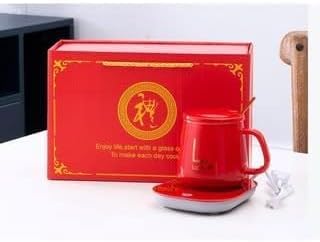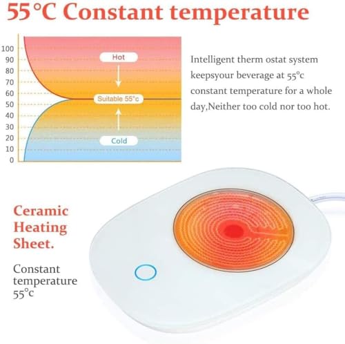 Generic - سخان فنجان قهوة سيراميك كهربائي للمكتب، تشغيل / ايقاف تلقائي للحفاظ على درجة الحرارة حتى 55 درجة مئوية، يتضمن غطاء وملعقة - 250 مل، احمر