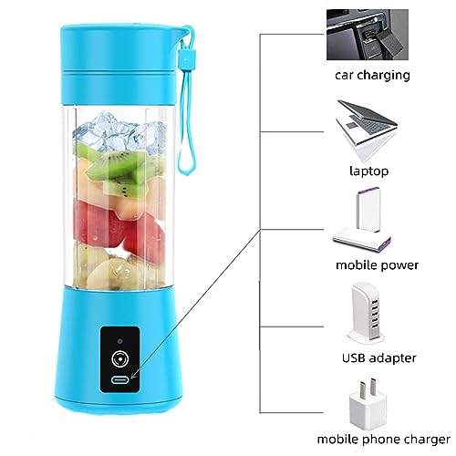 Oikkujmhi - portable blender jar. 18. 3 oz juice cup - makes soy milk and smoothie shakes - 6 blades super sharp - rechargeable - mini blender can take with you - great for outdoors and travel (blue)
