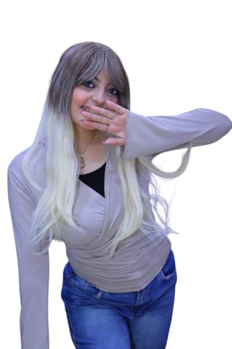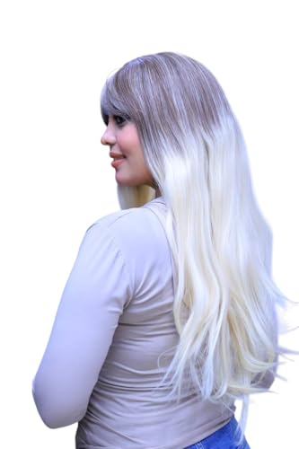 Generic - باروكة شعر مستعار طويل، أومبري رمادي إلى أبيض، مع غرة جانبية، للنساء