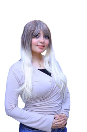 - تصميم أومبري عصري: باروكة شعر طويل بتدرج لوني جذاب من الرمادي إلى الأبيض يمنحك إطلالة عصرية ومميزة