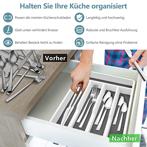 - Non-slip and durable: each interval is equipped with soft grip lining to give a good cushion. Make sure your cutlery does not move and protects against damage, small rubber feet on the bottom to stay stable and prevent slipping around in the drawer