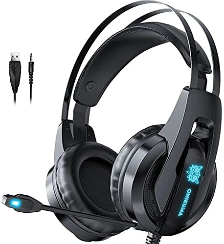 ONIKUMA GAMING - سماعة اسود فوق الاذن سلكي للراس بميكروفون كيه 16 باضاءة ليد بالفضاء اللوني ار جي بي لبلاي ستيشن 5 و4، Xbox One، كمبيوتر، ماك من اونيكوما أسود