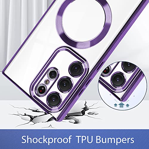 OOK - OOK Magnetic Clear Case for Galaxy S23 Ultra Case,Compatible with MagSafe, Love Heart Design Electroplated Case Soft TPU Shockproof Full Camera Lens Protective Case for Samsung Galaxy S23 Ultra