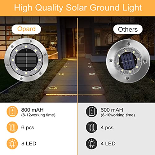 Spaceshoop - Opard Solar Ground Lights, 8 LED IP65 Waterproof Warm White Solar Decking Lights for Outdoor Garden, Pathway, Patio,Lawn (8 Pack)