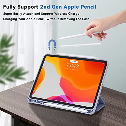 MuyDouxTech - Origami Case for iPad Pro 11 Inch 2021/2020/2018 with Pencil Holder, 5-in-1 Multiple Viewing Angles, Smooth Silicone Cover and Soft TPU Back, Auto Sleep/Wake & Pencil 2 Charging Smart Folio (Beige)