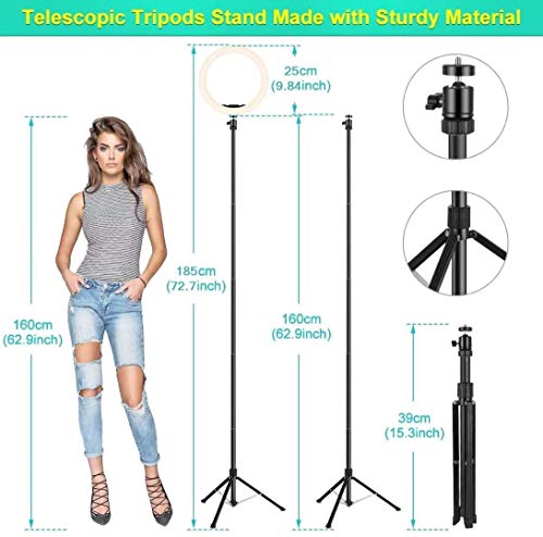 - 【Adjustable, Strong and Stable Tripod】 It is very easy for you to unfold and retract this 10" Selfie Ring Light. 30 seconds is enough to set to the best height you need, saving your time and effort. The height of the stand can reach 62.9"(160cm), which allows you to have a brighter light source and a wider angle. The tripod of this product is made of high-quality aluminum alloy and has a longer service life.