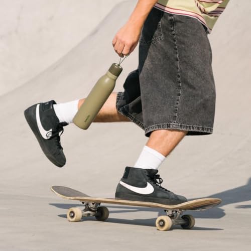 - 24-ounce double-walled insulated stainless-steel water bottle holds hot, cold, and carbonated drinks