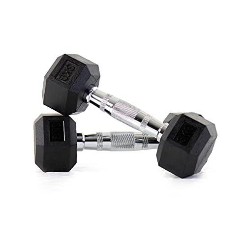 Generic - زوج من الدامبل السداسي المطلي بالمطاط مع مقبض فولاذ مطلي بالكروم وقبضة بأخاديد غير قابلة للانزلاق وتصميم مضاد للالتفاف