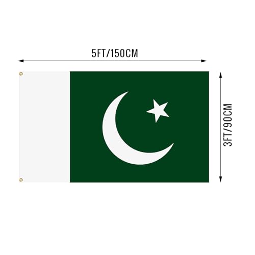 xepaxon - علم باكستان 3 × 5 قدم بالوان زاهية مع حلقات نحاسية لتزيين الاماكن الداخلية والخارجية والحفلات والفناء والحديقة والشوارع