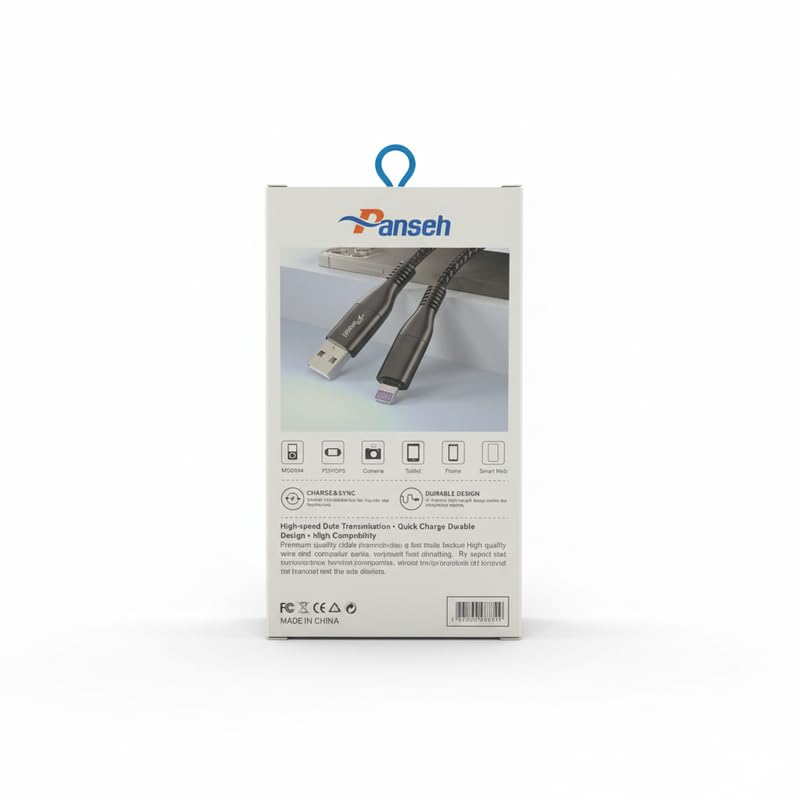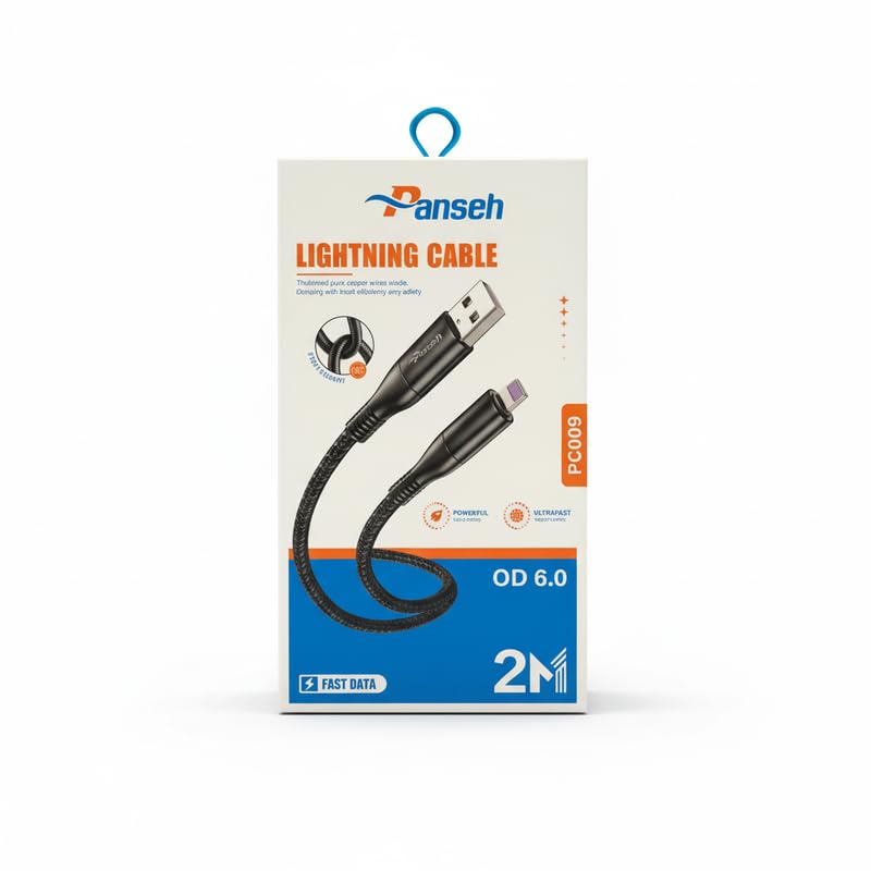 Panseh - كابل شحن سريع ونقل بيانات عالي السرعة من بانسيه - PC009 - طول الكابل 100 سم - كابل اضاءة - اسود