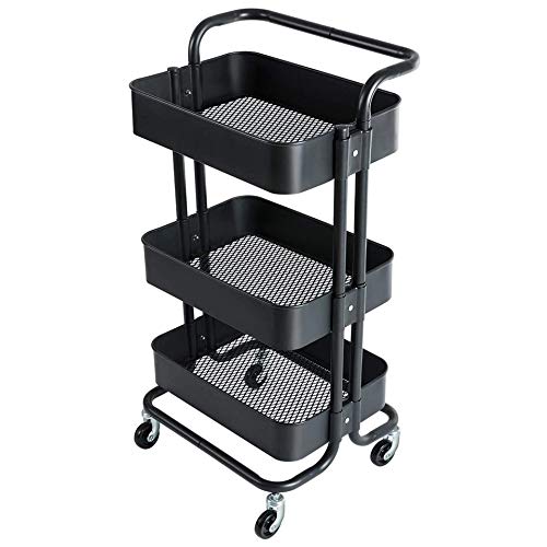 PANTH - PANTH™ 3-Tier Kitchen Storage Trolley Rack with Caster Wheels Rolling Cart Metal Utility Space Saving Home Storage Organizer Racks and Self with Wheel (Black)