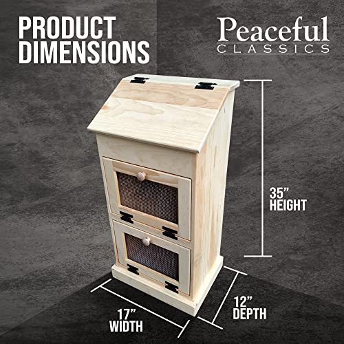 Peaceful Classics - Peaceful Classics Rustic Wooden Storage Bin, 17"W x 12" D x 35"H, Vegetable & Bread Storage, Unfinished
