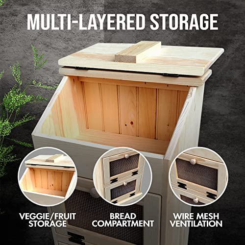 - EXCELLENT VENTILATION: This onion and potato storage has a wire mesh design that helps air flow through your rustic storage cabinet. It also protects bread and vegetables from unwanted visitors because the doors have a reliable seal.